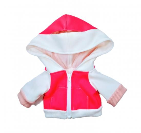 ステラルー Sサイズ 耳開きジップパーカー (サーモンピンク&オフホワイト)です。